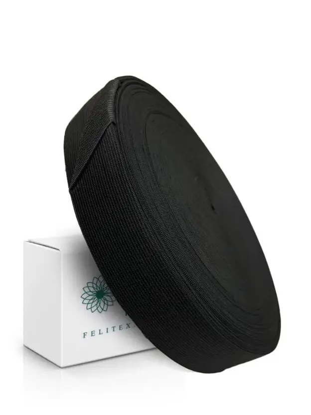 Резинка вязаная эластичная швейная узкая, черная 25 мм